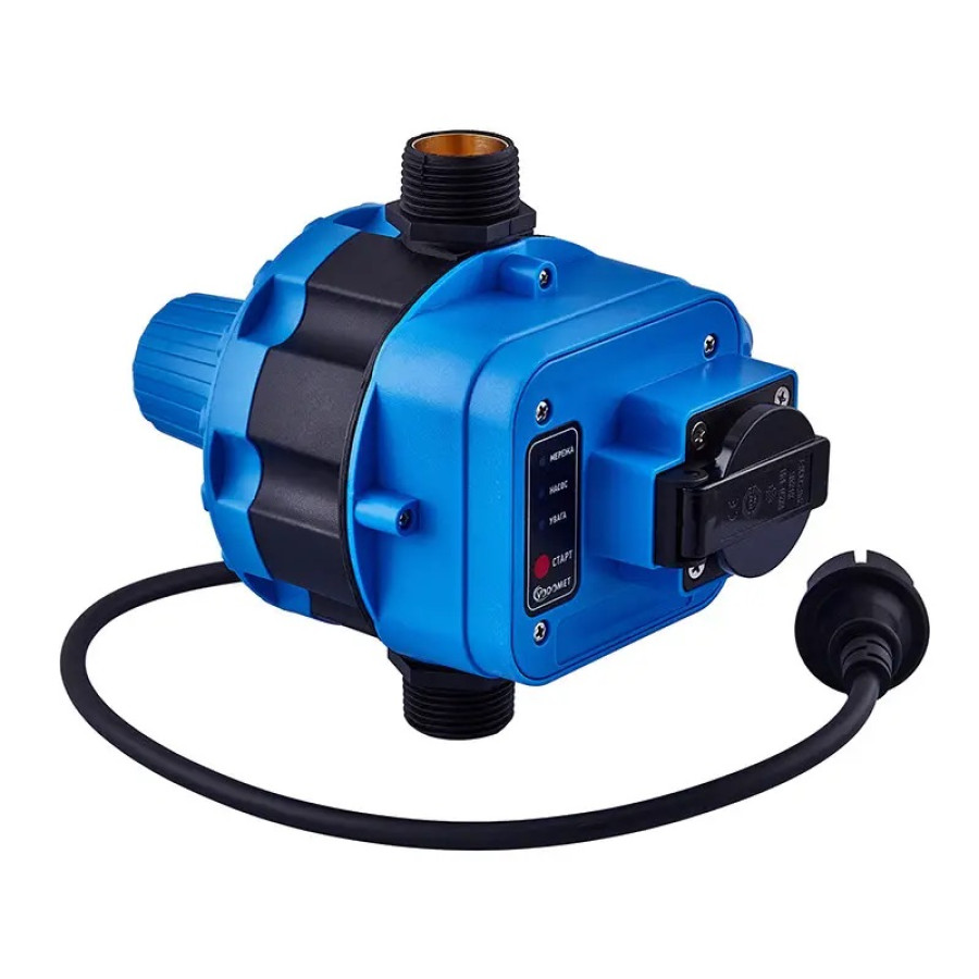 Призначений для підтримки стабільного тиску у системі водопостачання та захисту насоса від "сухого ходу". Контролер запускає насос під час падіння тиску в системі нижче встановленого рівня та відключає його при припиненні водорозбору, що забезпечує ефективну та безпечну роботу без необхідності встановлення гідроакумулятора.