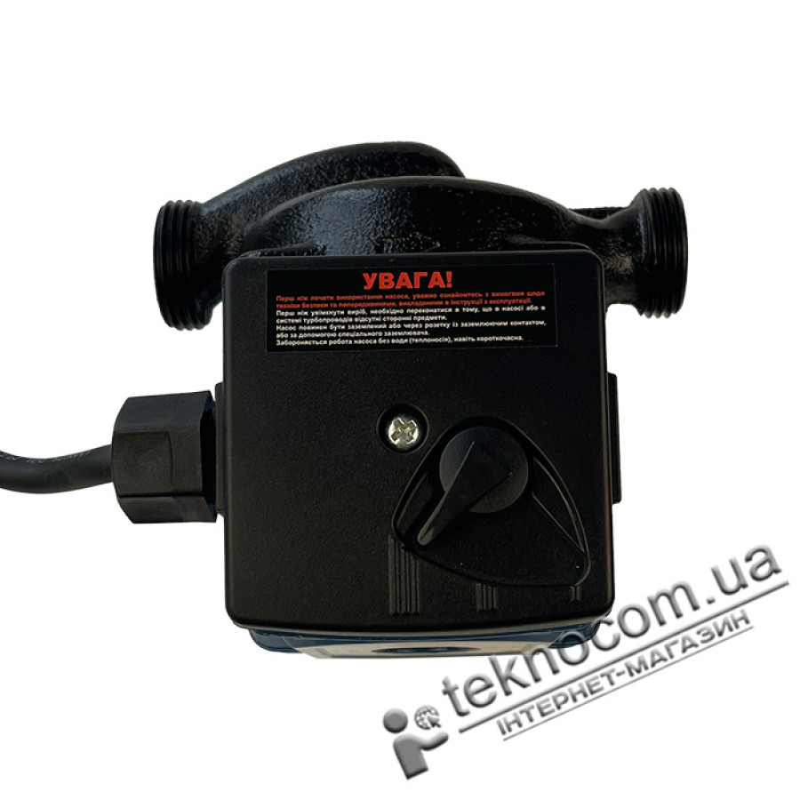 - Тип двигуна – однофазний з мокрим ротором і ступінчастим регулюванням швидкості;
