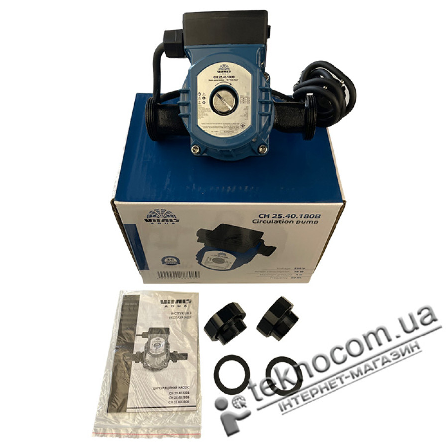 Насос циркуляційний VITALS AQUA CH 25.40.180B з кабелем, вилкою та приєднувальним комплектом з прокладками