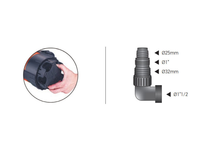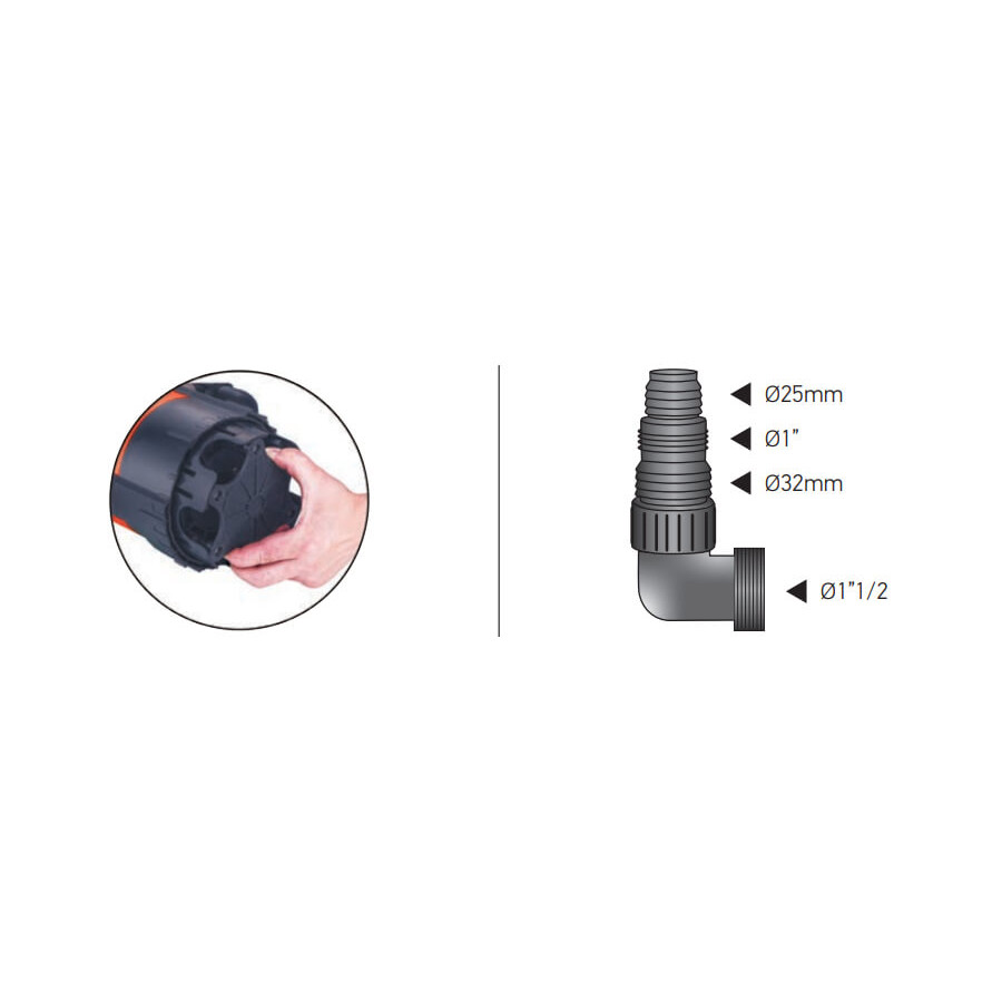 Додатково оснащений регульованим по висоті опорним майданчиком водозабірної частини. Це конструктивне рішення дозволяє перекачувати рідину в трьох режимах з допуском частинок, що перекачуються: 1 мм, 8 мм, 35 мм