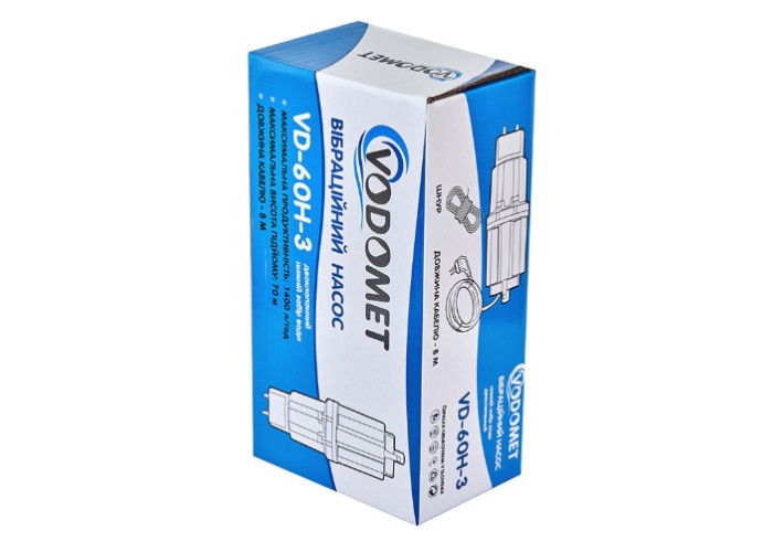 Занурювальний вібраційний насос для колодязя VODOMET VD-60H-3 з нижнім забиранням води застосовується для подачі води з колодязів або з відкритої водойми з глибиною занурення у воду до 3 м.