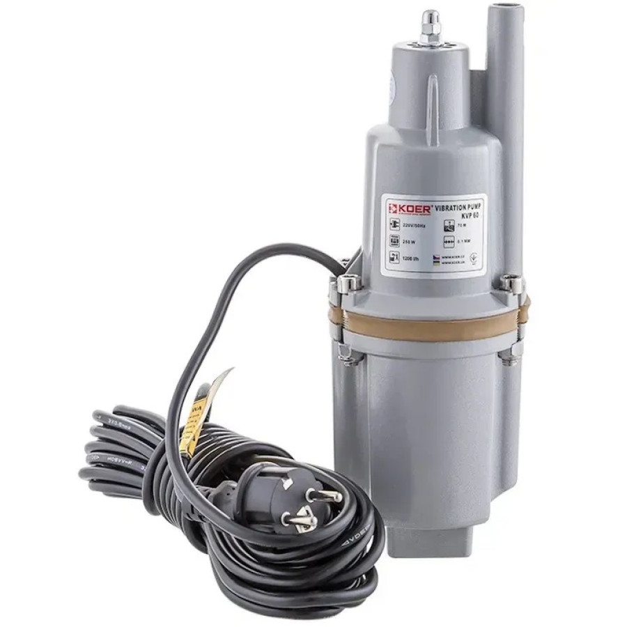 Н = 70 м, Q = 1,2 м3/год (20 л/хв.), Р = 250 Вт, глибина занурення до 3 м, забирання води – зверху