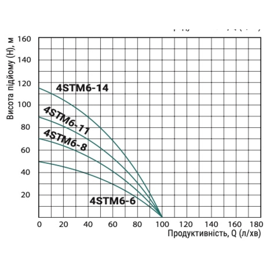 - У відцентровому насосі 4STM6-11 кількість робочих коліс становить 11 штук. Ці колеса розташовані послідовно і забезпечують максимальну продуктивність насоса до 100 літрів на хвилину.