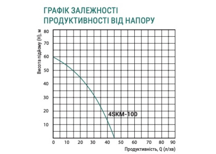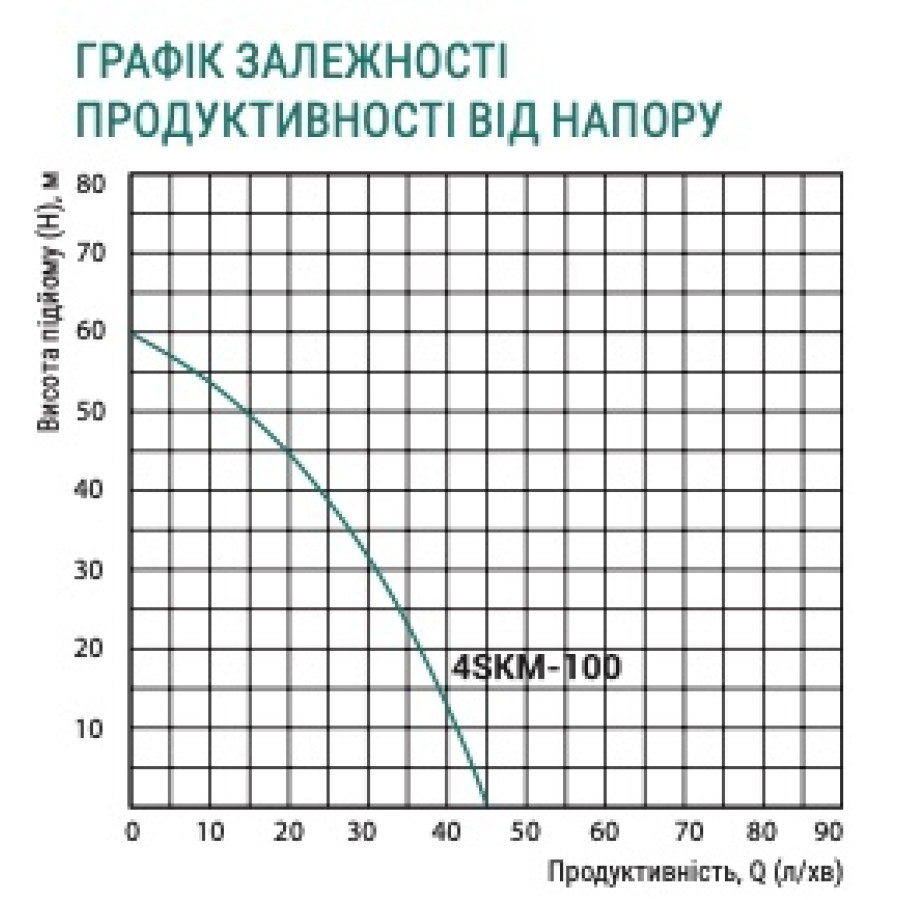 Н = 130 м, Q = 3 м3/год. (50 л/хв.), Р = 1500 Вт, діаметр корпусу 96 мм, 1"