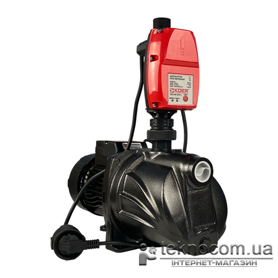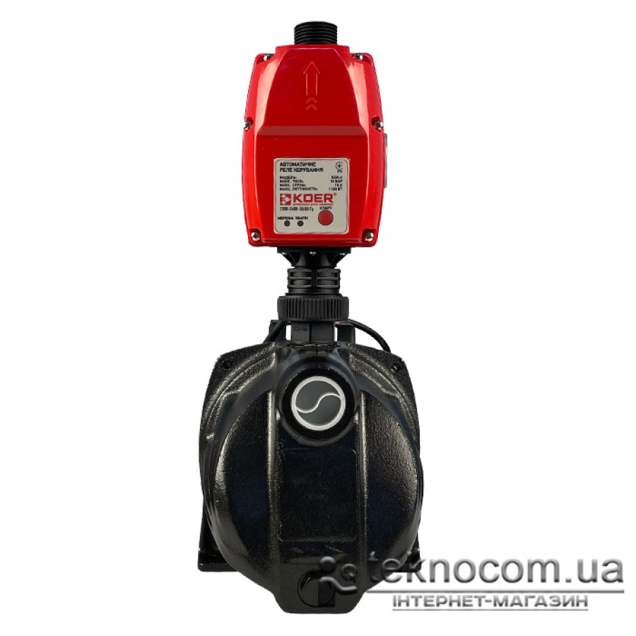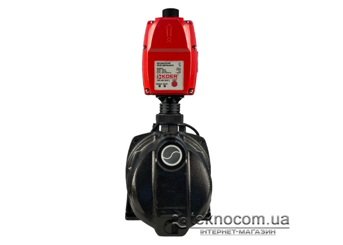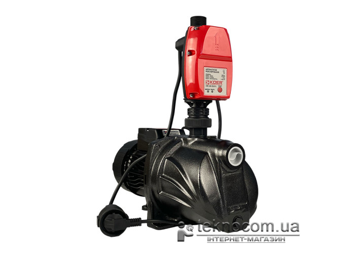 Насосна станція KOER JET-100-KSR-2 з контролером тиску, самовсмоктувальним насосом без гідроакумулятора, з розеткою для підключення насосу та манометром