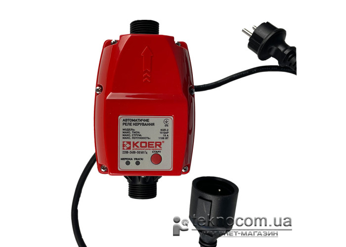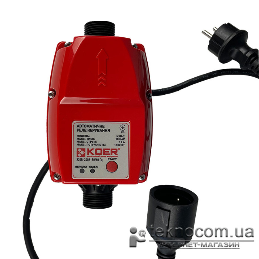 Контролер тиску електронний KOER KSR-2 призначений для підтримки стабільного тиску в системі водопостачання та захисту насоса від "сухого ходу". Контролер запускає насос під час падіння тиску в системі нижче встановленого рівня та відключає його при припиненні водорозбору, що забезпечує ефективну та безпечну роботу без необхідності встановлення гідроакумулятора.