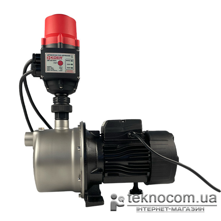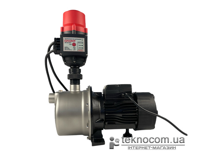 Насосна станція KOER JS-600-KSR-3 з контролером тиску, з самовсмоктувальним насосом (нержавіюча сталь), без гідроакумулятора, з розеткою для підключення насосу