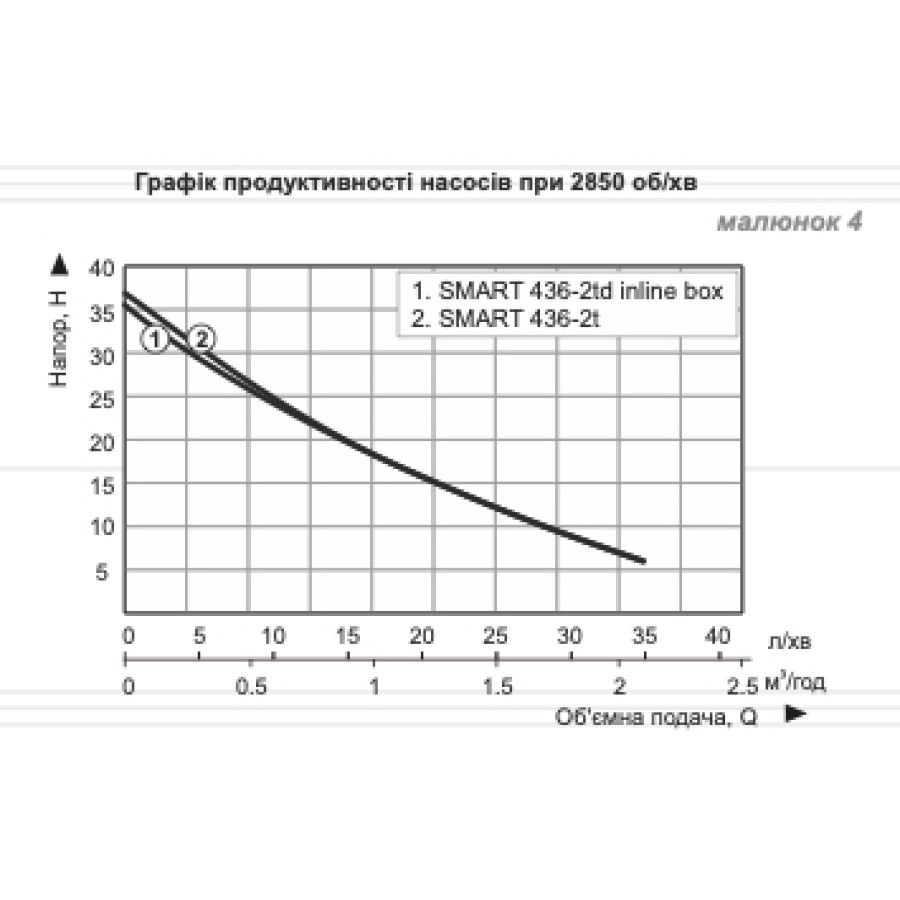 | Об'ємна подача (Q), л/хв | 0 | 5 | 10 | 15 | 20 | 25 | 30 | 35 |