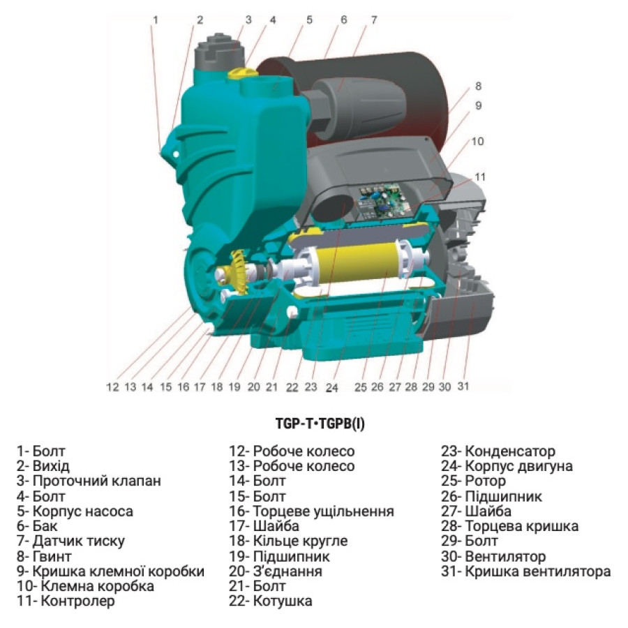 - Тип двигуна: асинхронний, закритого типу з вбудованим в обмотку термозахистом