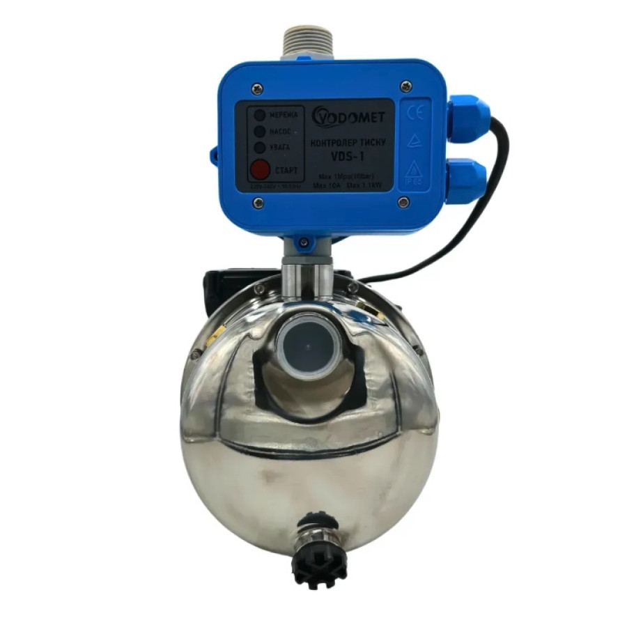 Насосна станція VODOMET JS-100-VDS-1 з контролером тиску, самовсмоктувальним насосом (нержавіюча сталь), без гідроакумулятора