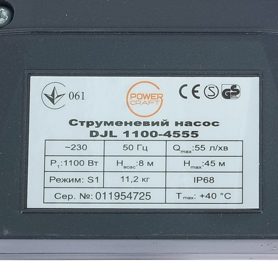 Побутовий поверхневий самовсмоктуючий струменевий насос Powercraft DJ 1100-4555 призначений для поливу ділянки, перекачування води та водопостачання.
