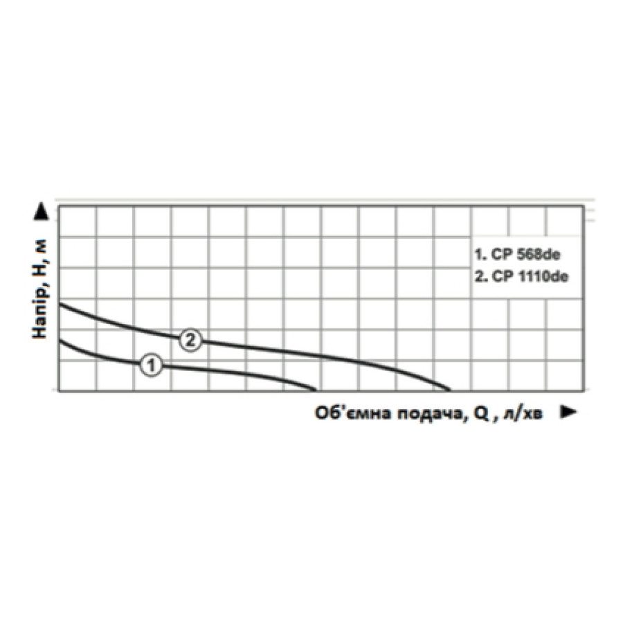 Н = 17 м, Q = 5,1 м3/год. (85 л/хв.), Р = 570 Вт, глибина всмоктування до 8 м, підключення 1"×1"