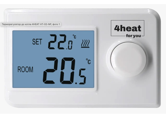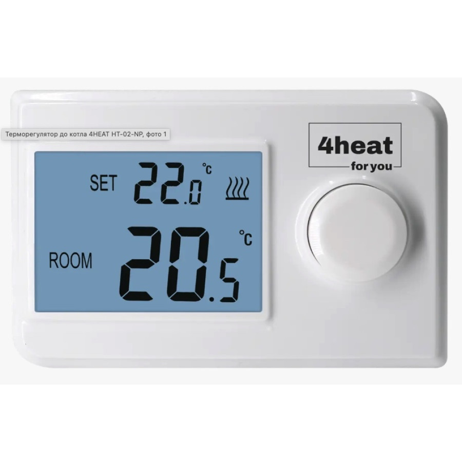 Терморегулятор 4HEAT HT-02-NP оснащений РК-дисплеєм, де виводиться вся поточна інформація, а також функціональним роликом (колесом) управління. Живлення самого контролера здійснюється від 2х пальчикових батарейок типу ААА.
