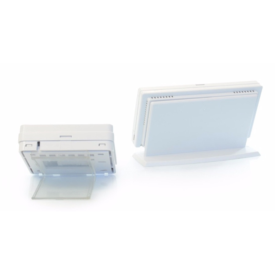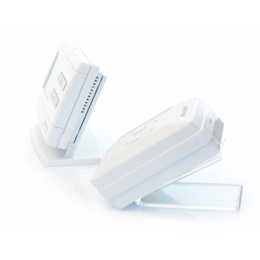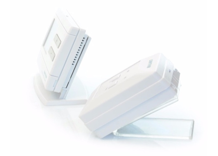 Термостат складається з двох частин - вільно переносного кімнатного термостата і приймаючого пристрою, який здійснює управління котлом / кондиціонером. Між двома пристроями існує радіочастотний зв'язок.