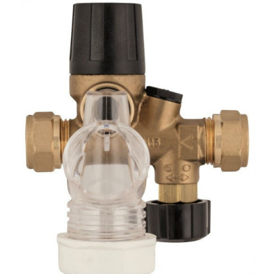 З'єднання - компресійний фітінг 15 мм (двостороннє). Обладнана запірним клапаном, зворотним клапаном.