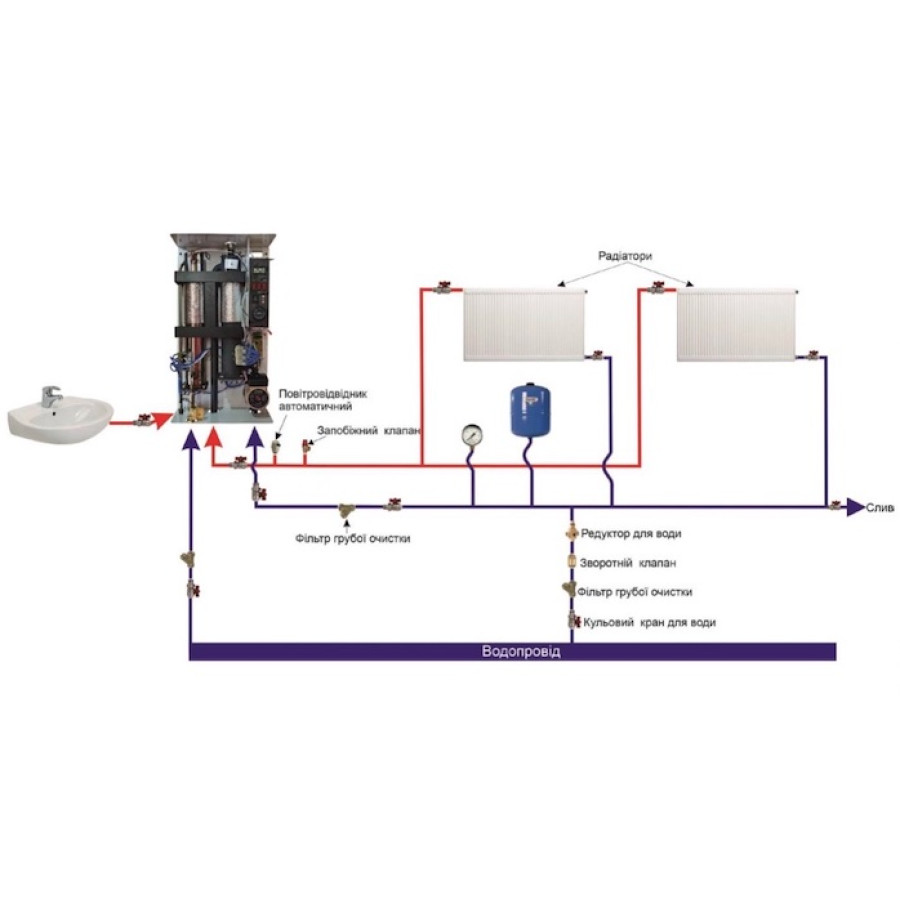 - Працює тільки проточний водонагрівач при відкритті крана гарячої води.