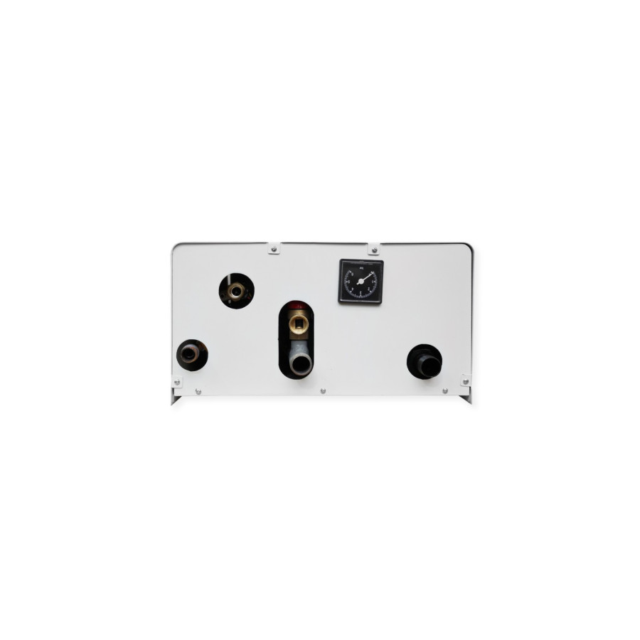 - Теплообмінник з нержавіючої сталі оснащений окремим запобіжним клапаном та датчиком протоку.