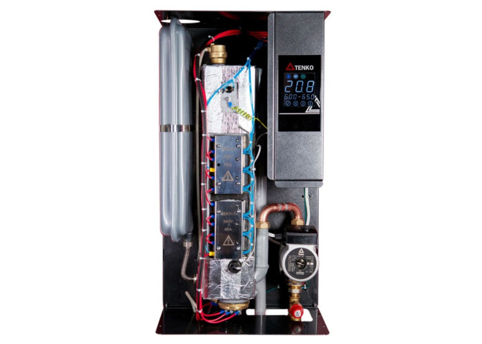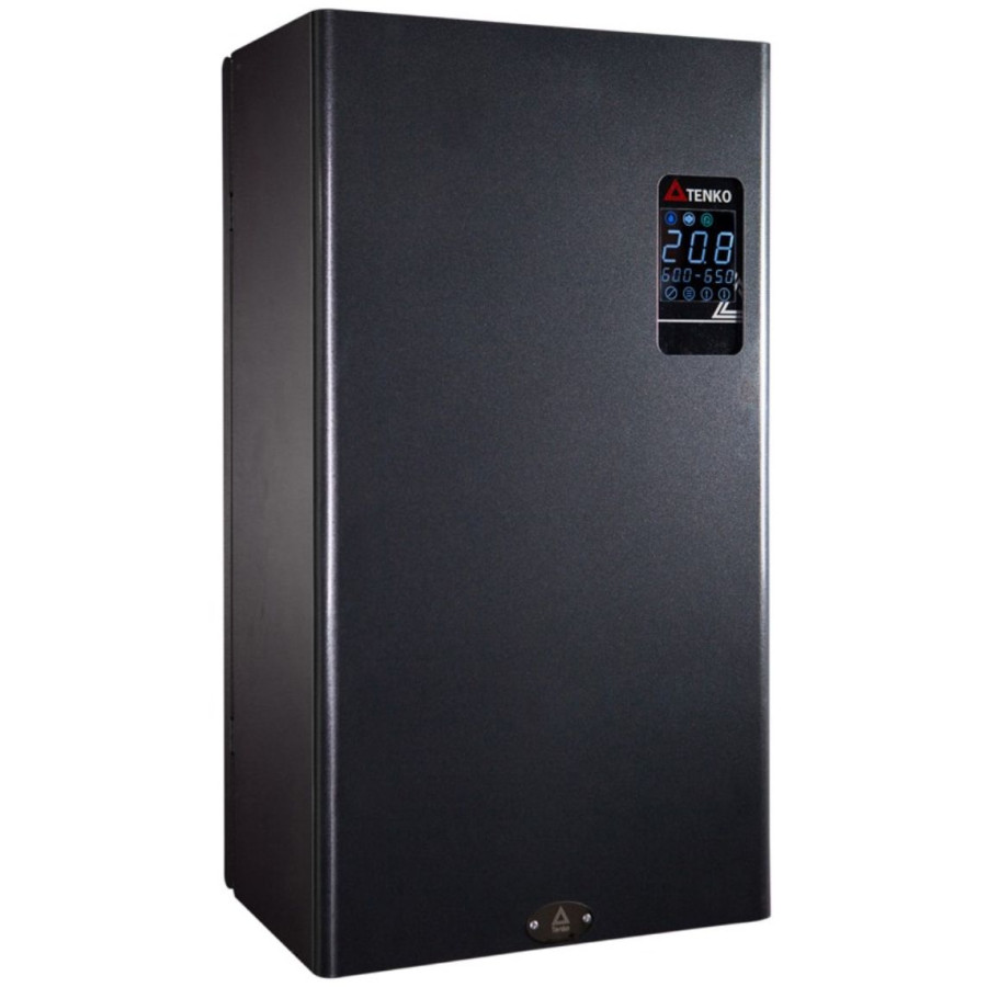 Безшумний електрокотел Tenko Digital Standart Plus 7,5 кВт 220 В (SDKE+_7,5/220 SSR) з насосом та бачком. Одноконтурний, настінного типу, призначений для опалення приміщень до 75 кв.м тільки з закритими системами опалення з тиском не менше, ніж 0,8 бар. Потужність – 7,5 кВт, три ступені нагріву 2,5 – 5 – 7,5 кВт, електронне управління режимом роботи.