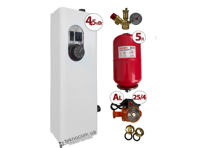 Сумарна ціна комплекту обійдеться вам дешевше на 15%, ніж купувати все окремо і на 60% дешевше, ніж коштує подібний котел із вбудованим насосом, розширювальним бачком та групою безпеки.