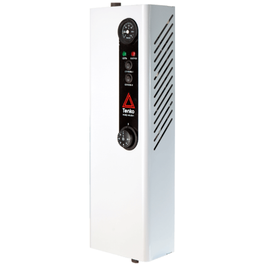 - Настінний електрокотел без насоса Тенко Економ потужністю 6 кВт, призначений для автономного опалення приватних будинків та невеликих громадських приміщень площею до 60 кв. м. Розрахований на роботу у відкритих та закритих системах опалення з примусовою циркуляцією теплоносія. Встановлюється як основне або резервне джерело опалення на додаток до газового або твердопаливного котла.