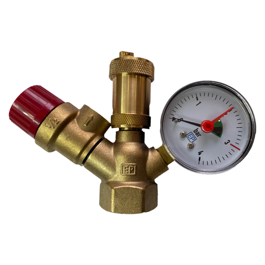 - група безпеки EUROPRODUCT EP.2010 (повітровідвідник, запобіжний гідравлічний клапан на 3 бар, манометр)