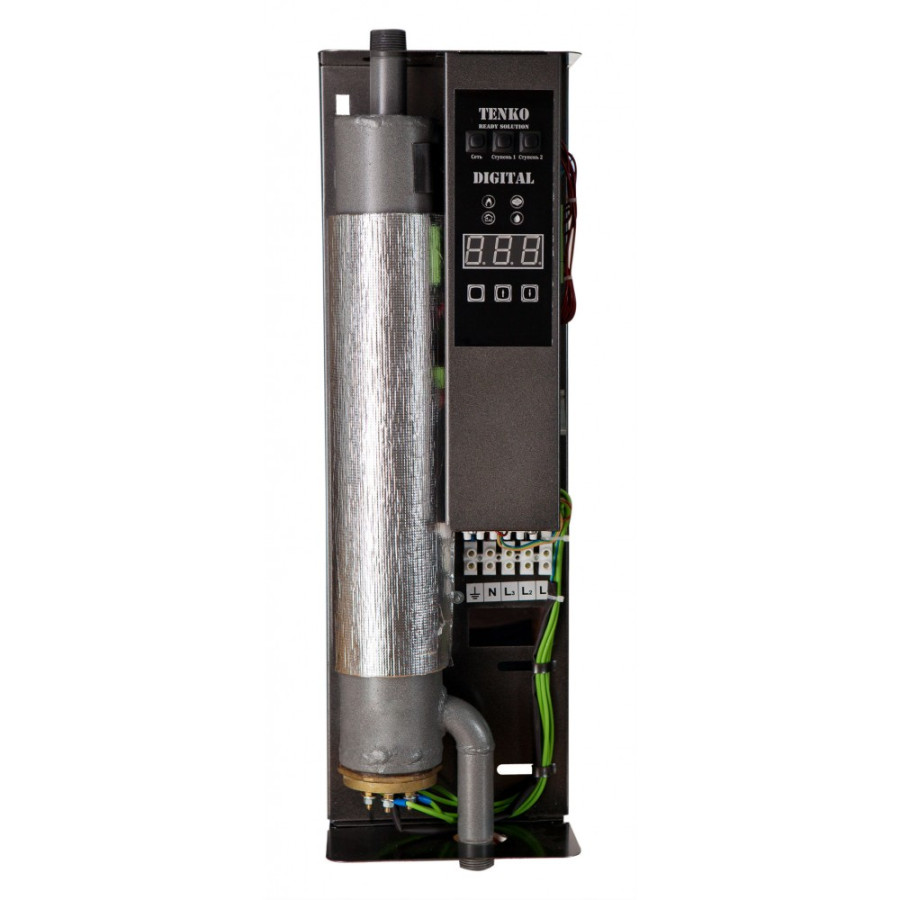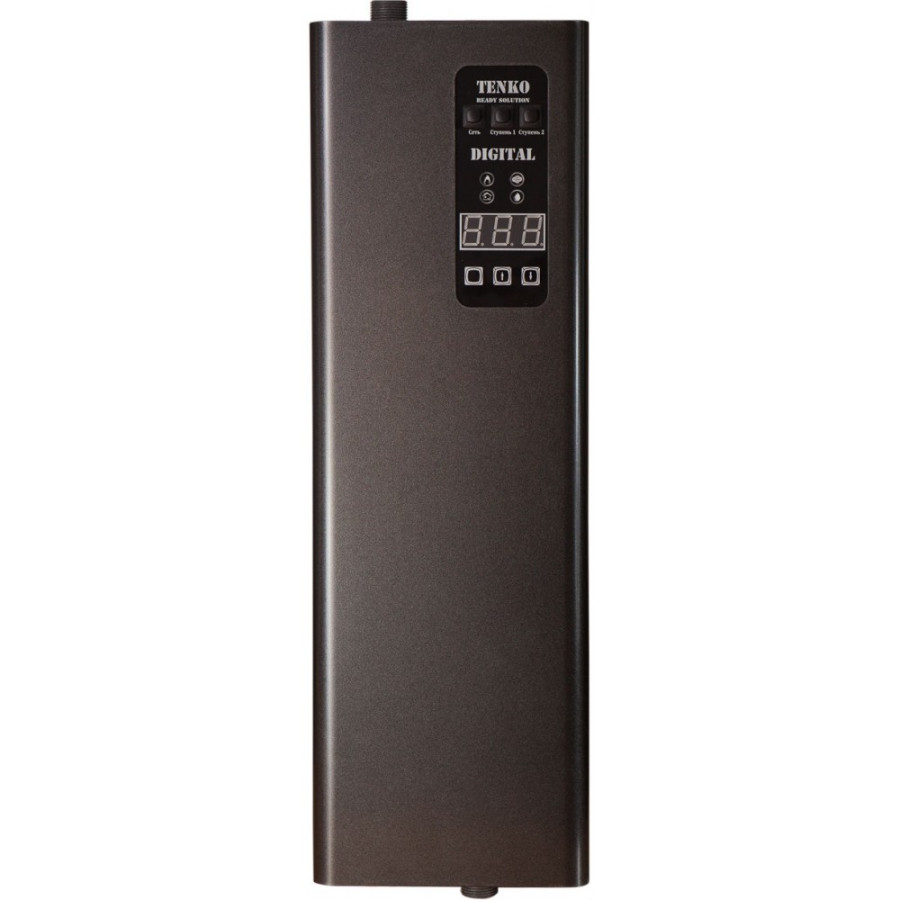 Котел Tenko Digital 12 кВт 380 В (DKE_12) з цифровим управлінням. Без насоса і бачка. Одноконтурний, настінного типу, призначений для опалення приміщень до 130 кв.м. Розрахований на роботу в закритих і відкритих системах опалення. Потужність – 12 кВт, три ступені нагріву 4 – 8 – 12 кВт, електронне управління режимом роботи.