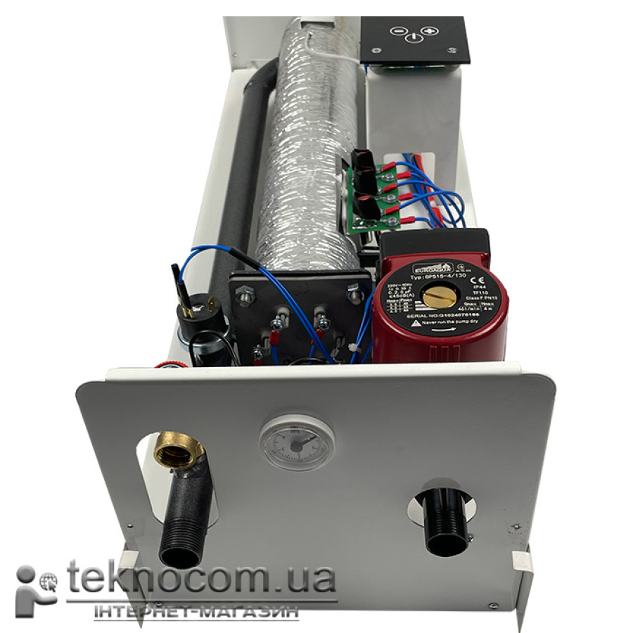 Безшумний настінний одноконтурний електрокотел опалення з електронним керуванням, з циркуляційним насосом, з групою безпеки та вбудованим розширювальним бачком. Призначений для автономного опалення приватних будинків та невеликих громадських приміщень площею до 150 кв. м, з примусовою циркуляцією теплоносія та з підключенням до трифазної мережі – 380 В