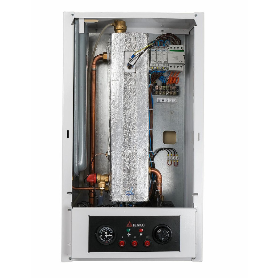 Електрокотел Tenko Стандарт Плюс New 15 кВт (СПКЕ New_15) з насосом та бачком. Одноконтурний, настінного типу, призначений для опалення приміщень до 150 кв.м. Розрахований на роботу тільки в закритих системах опалення. Потужність – 15 кВт, три ступені нагріву 5 – 10 – 15 кВт, управління режимом роботи за допомогою ручного термостата.