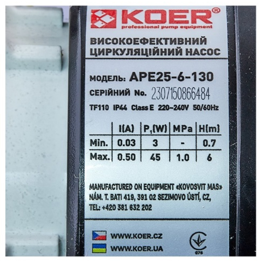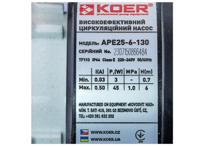Энергосберегающий циркуляционный насос KOER APE 25-6-130 с частотным управлением