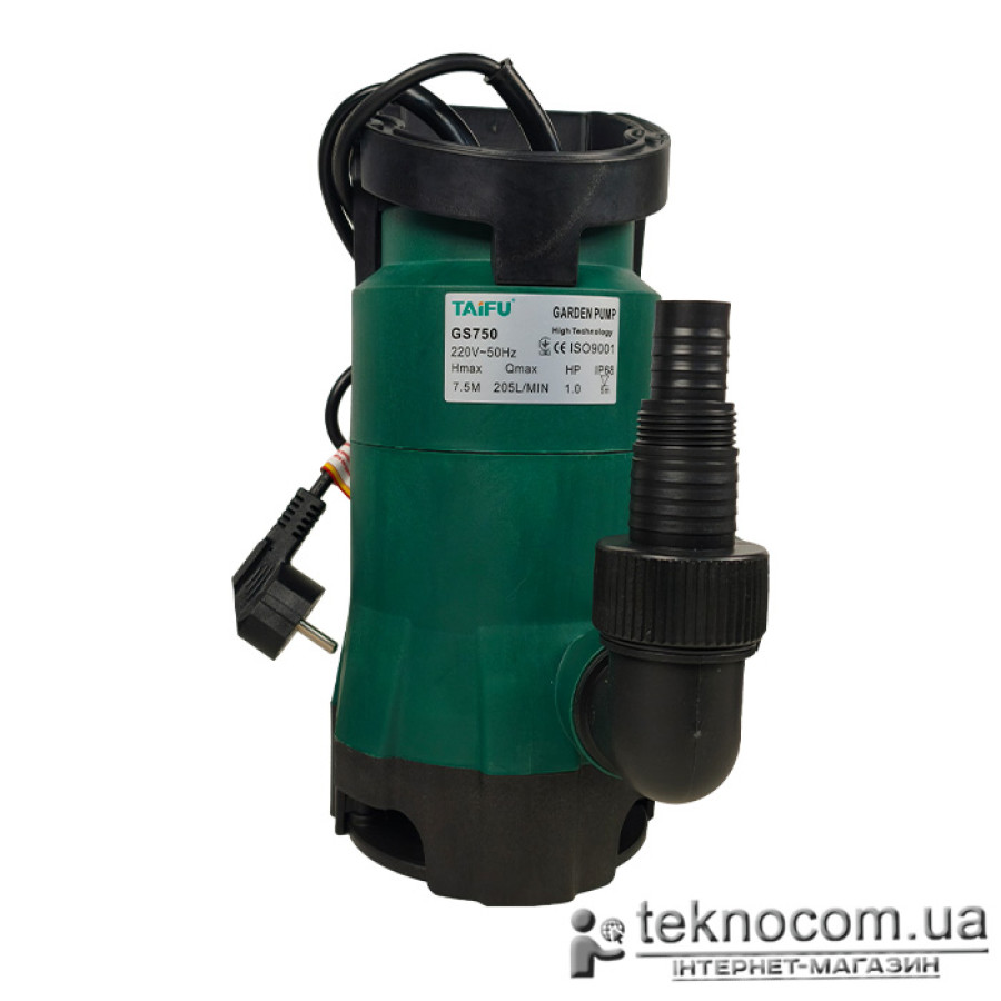 Насос дренажный Taifu GS-750 в полимерном корпусе — предназначен для откачки или перекачивания чистой или слегка замутненной воды. Допускаются включения твердых частиц диаметром до 25 мм