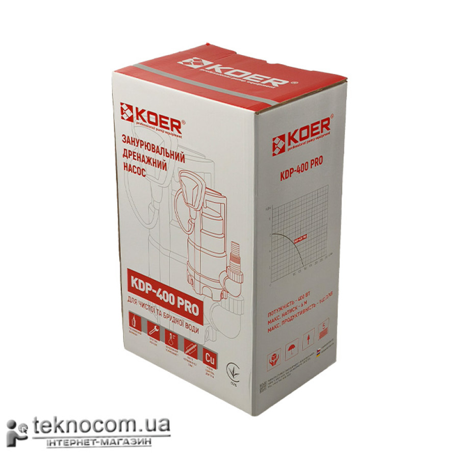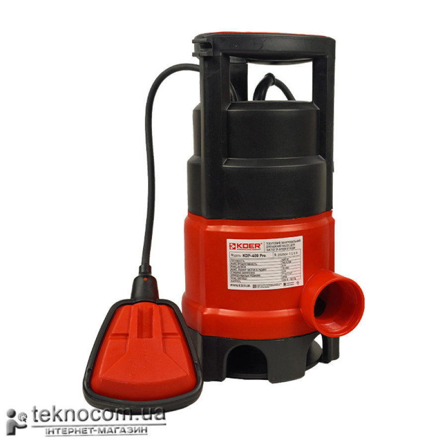 Насос дренажный Koer KDP 400 PRO — предназначен для перекачивания не слишком загрязненных бытовых, коммунальных, сельскохозяйственных вод с мелкими частицами до 35 мм