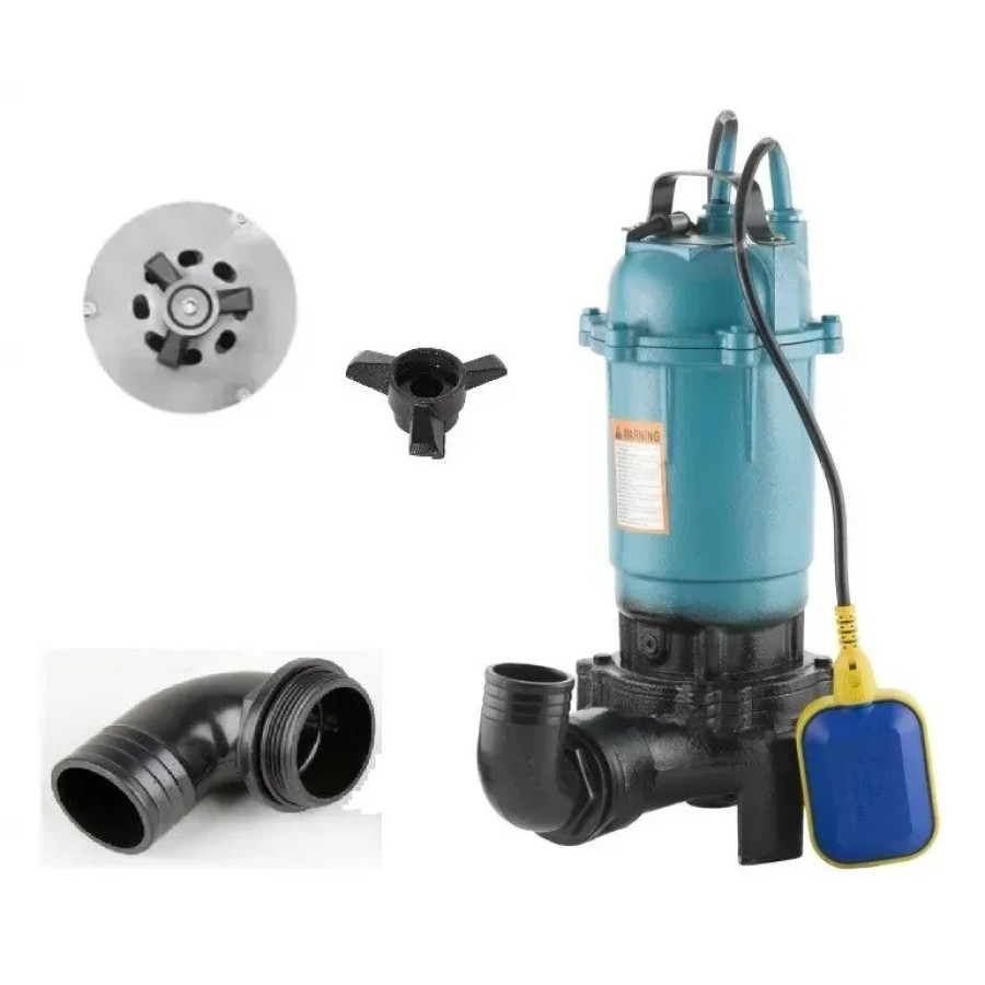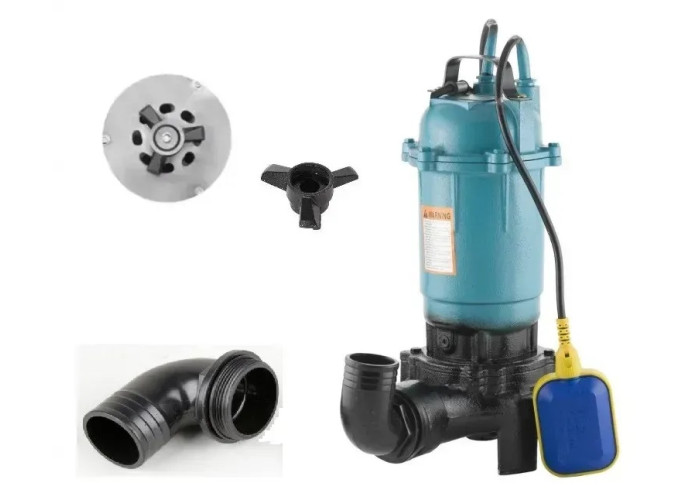 Н = 12 м, Q = 15 м3/ч (250 л/мин.), Р = 2000 Вт, глубина погружения до 5 м, с патрубком 2”, с насадкой ножом