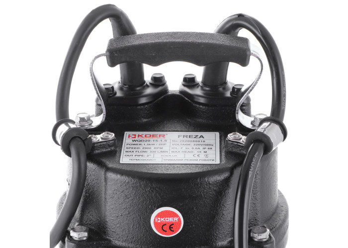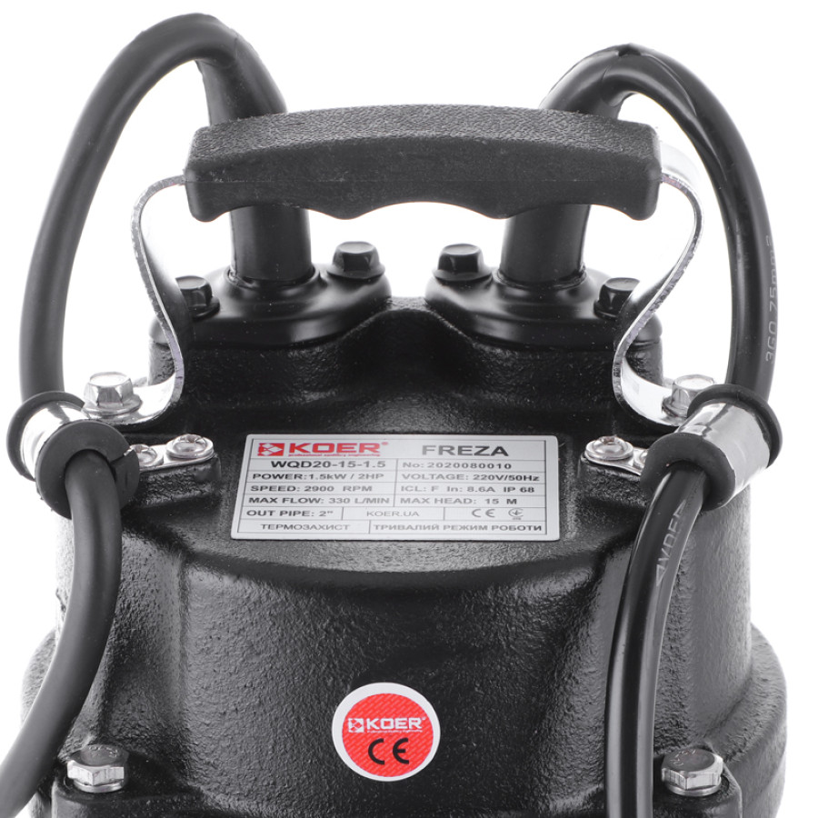 Погружные дренажно-фекальные насосы KOER WQD 20-15-1.5 FREZA предназначены для откачки воды из затопленных помещений, сточных вод, канализационных вод, дождевой и фильтрационной воды, отвода вод, содержащих фекалии, наполнение или осушение бассейнов, ванн; подача воды из неглубоких колодцев, цестерн и открытых водоемов для систем полива в сельском хозяйстве.