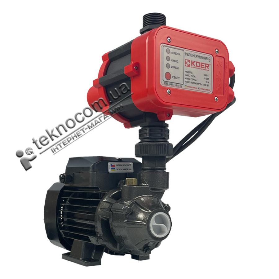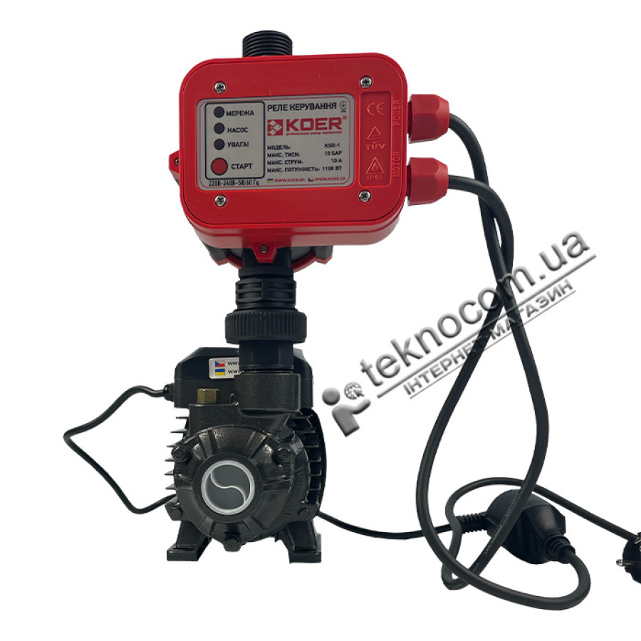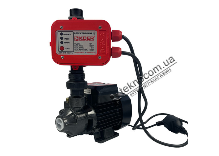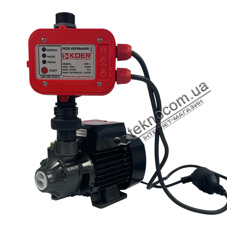 Насосная станция KOER QB-60-KSR-1 с контроллером давления с розеткой, без манометра, вихревым насосом, без гидроакумулятора
