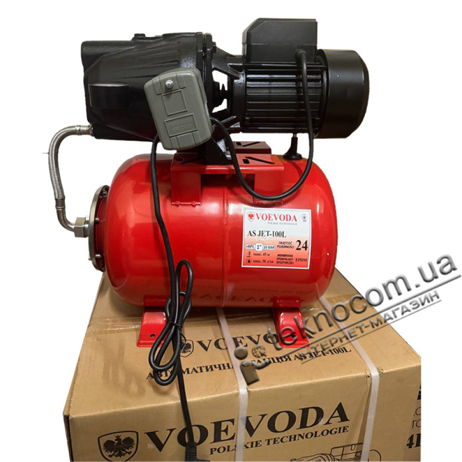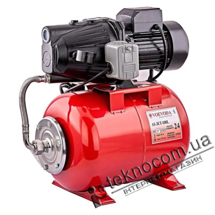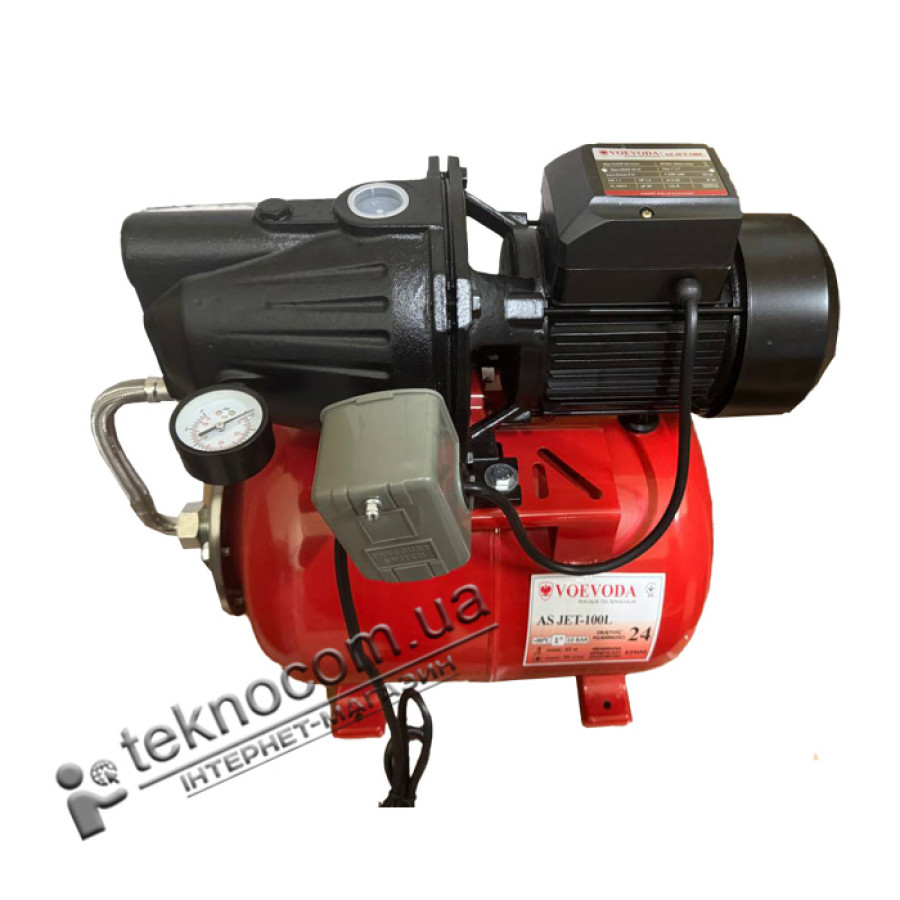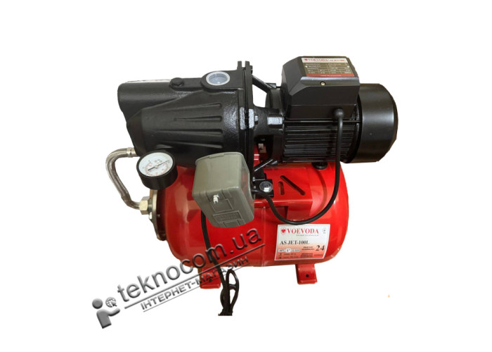 VOEVODA AS JET100L – насосная станция с самовсасывающим насосом, гидроаккумулятором, механическим реле давления и манометром