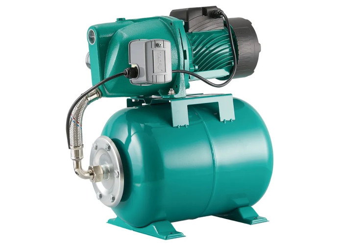 Комплект оборудования на основе поверхностного центробежного самовсасывающего насоса Taifu JET-100 с гидроаккумулятором на 24 л, автоматикой управления насосом и пятерником.
