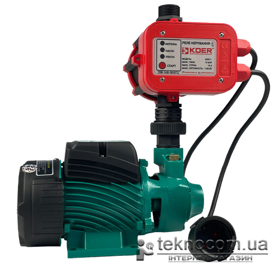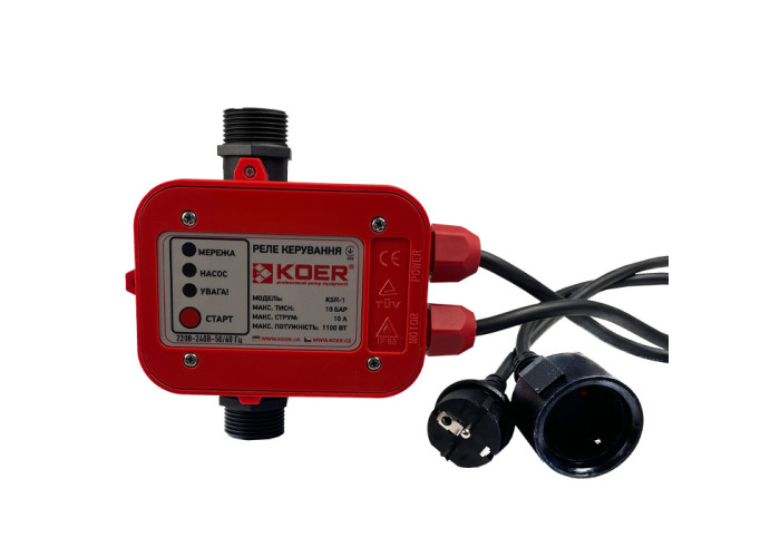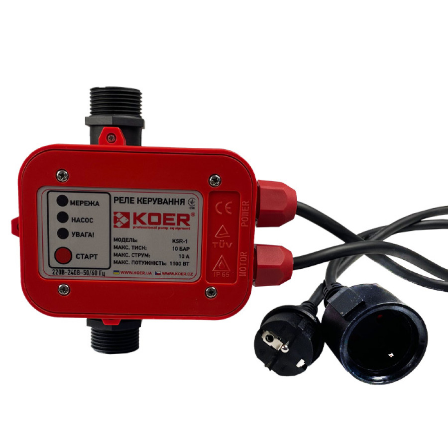 Контроллер давления электронный KOER KSR-1 предназначен для поддержания стабильного давления в системе водоснабжения и защиты насоса от "сухого хода". Контроллер запускает насос при падении давления в системе ниже установленного уровня и отключает его при прекращении водоразбора, что обеспечивает эффективную и безопасную работу без необходимости установки гидроаккумулятора.