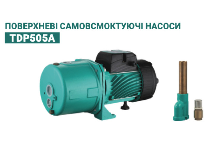 Центробежный поверхностный самовсасывающий насос TAIFU TDP505A с выносным эжектором предназначен для подачи чистой воды из открытых водоемов, колодцев, скважин, накопительных емкостей в трубопроводы нзкого давления.