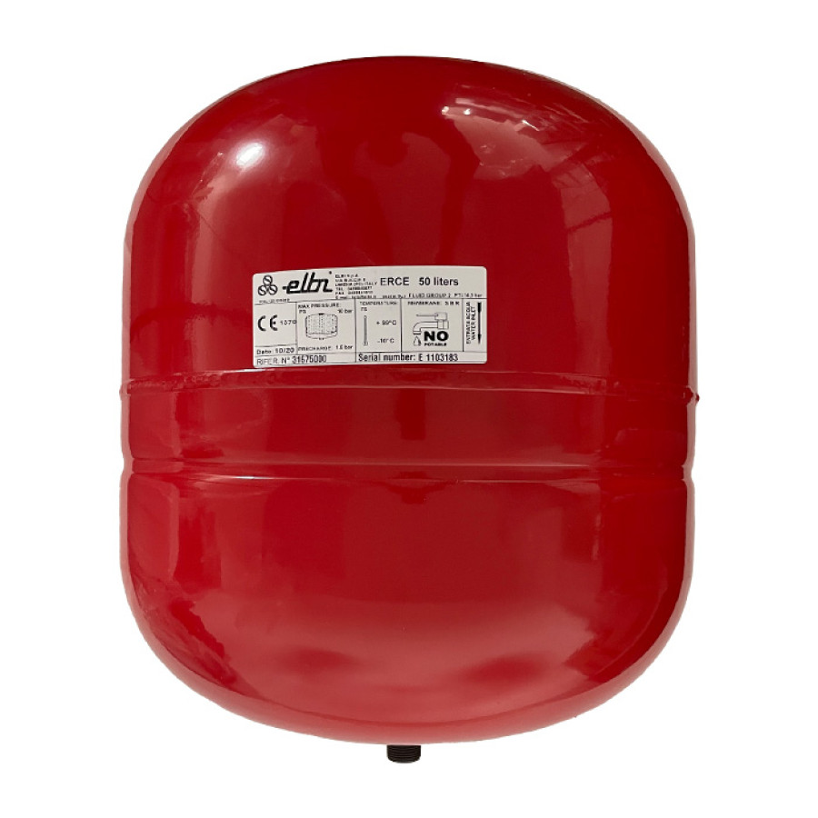 Расширительные баки ELBI ERCE-50 с фиксированной мембраной предназначены для компенсации температурных расширений теплоносителя в замкнутых промышленных системах отопления и водоснабжения объемом до 500 л.
