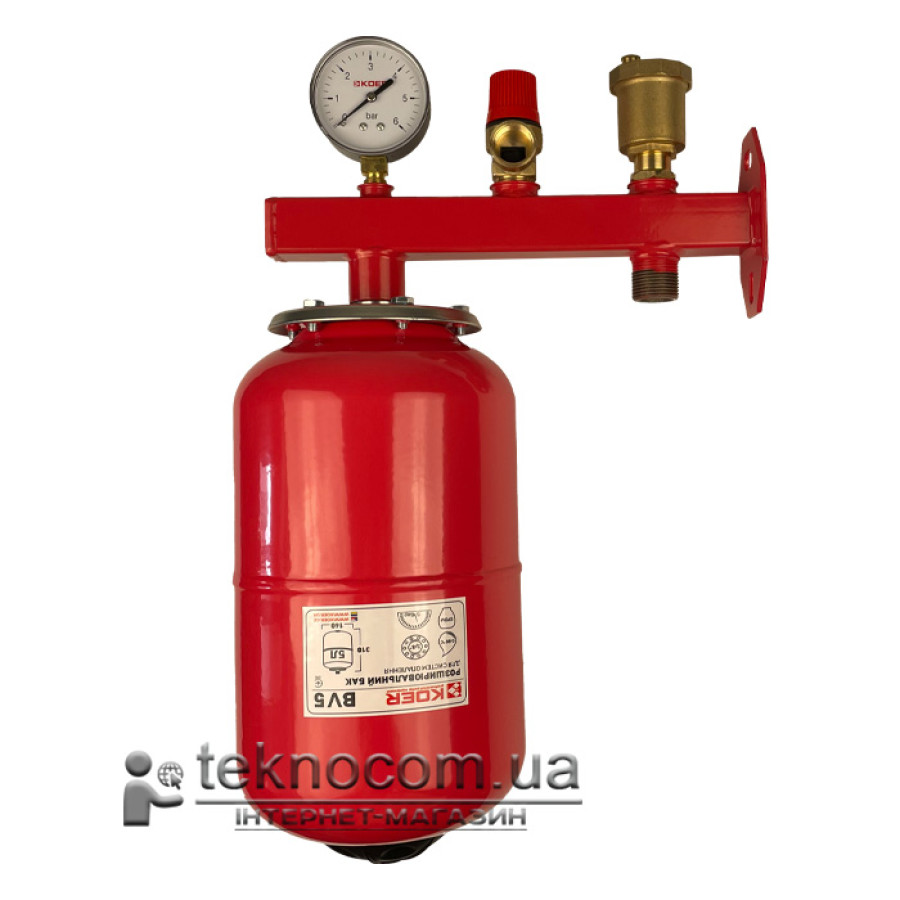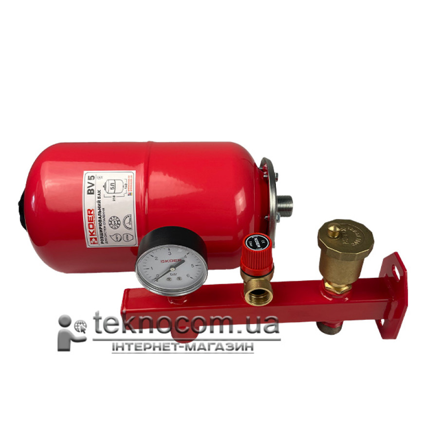 Комплект группі безопасности KOER KR.103 с круглым бачком 5 л (Koer BV5) — облегчит поиски и монтаж необходимой обвязки для электрического котла оттопления.