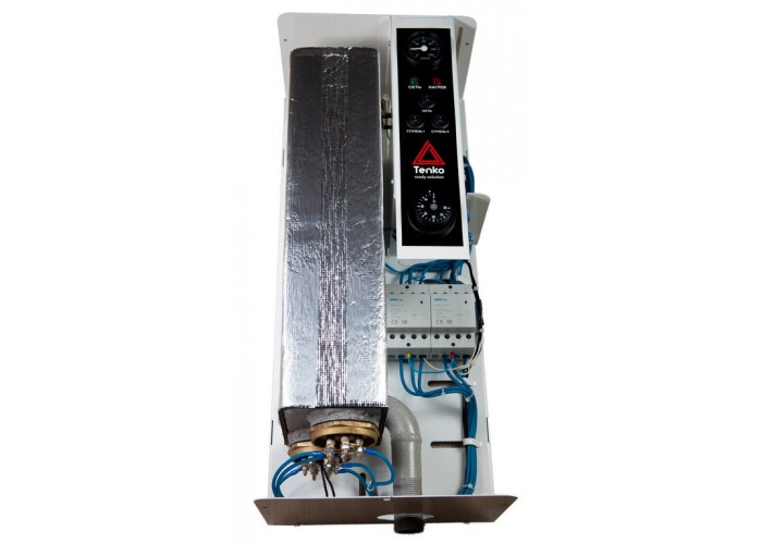 Электрокотел Tenko Эконом 21 кВт 380 В настенного типа, предназначен для отопления помещений до 220 кв.м с открытыми и закрытыми системами отопления. Мощность – 21 кВт, две ступени нагрева 10,5 – 21 кВт, управление режимом работы с помощью ручного термостата, без встроенного насоса и расширительного бачка.