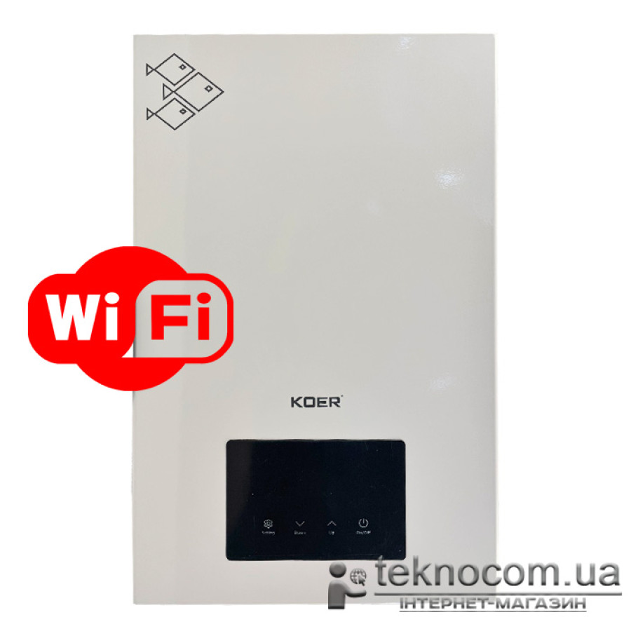 Электрический настенный одноконтурный котел KOER KWH.E0124 с Wi-Fi управлением, максимальной мощностью 24 кВт предназначен для отопления площади до 240 кв. м.