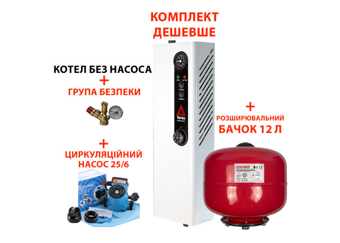 Суммарная цена комплекта обойдется вам дешевле на 15%, чем покупать все по отдельности и на 60% дешевле, чем стоит подобный котел со встроенным насосом, расширительным бачком и группой безопасности.