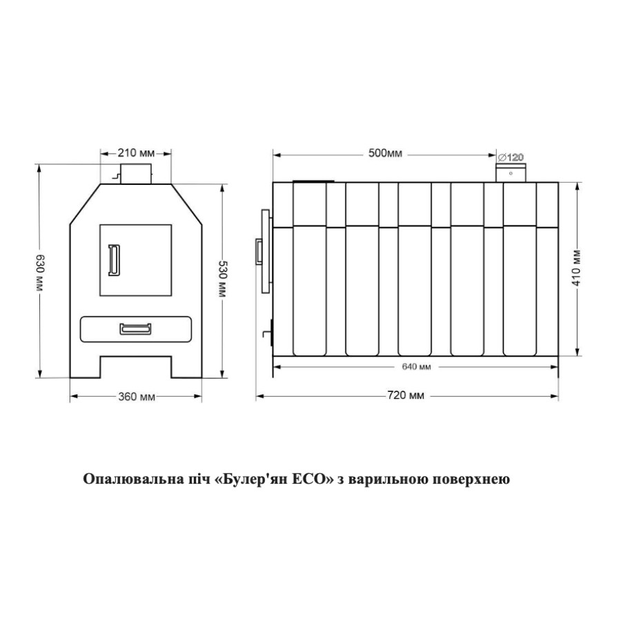 Улучшенный конвекционный теплообменник позволяет экономно, качественно и равномерно прогревать помещение, при этом стоимость монтажа обойдется дешевле, чем твердотопливного котла, т.к. булерьяну не требуется водяная обвязка.