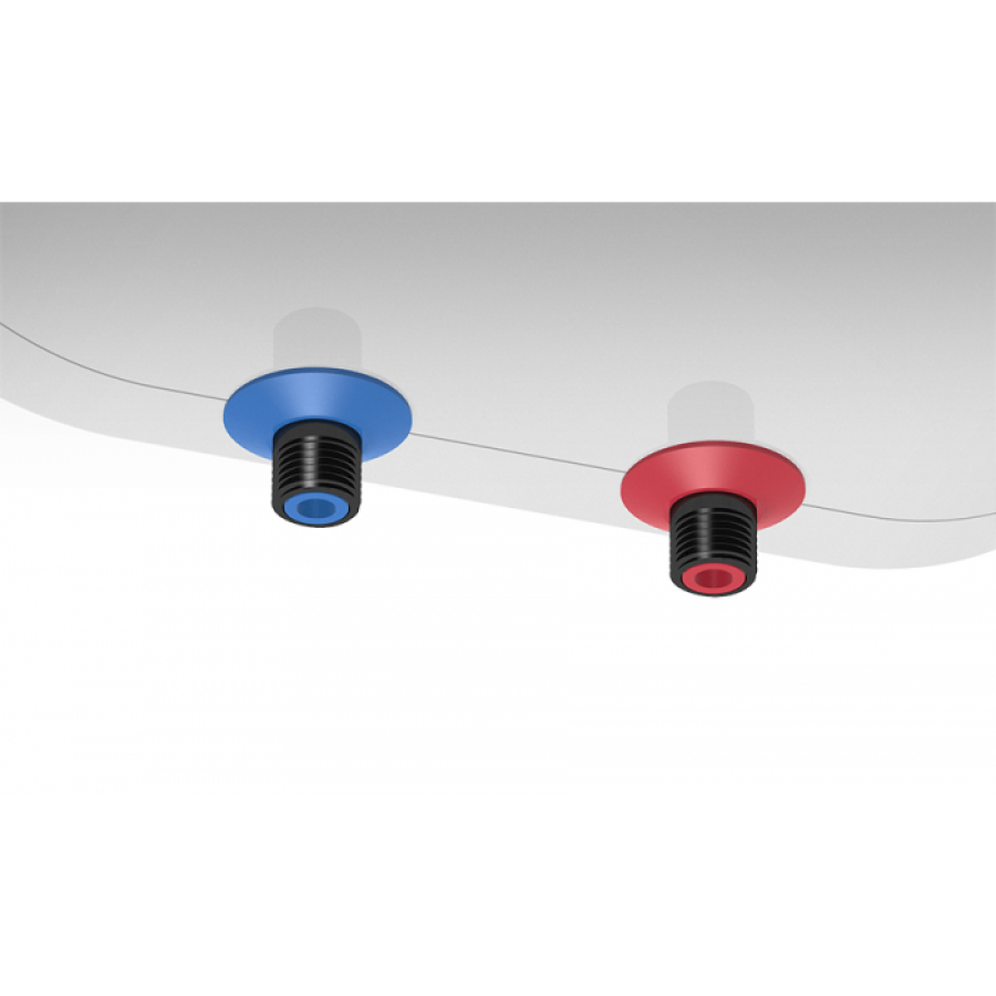 Бойлер имеет два резьбовых патрубка G½”: для входа холодной воды с синим кольцом и выхода горячей воды – с красным кольцом.