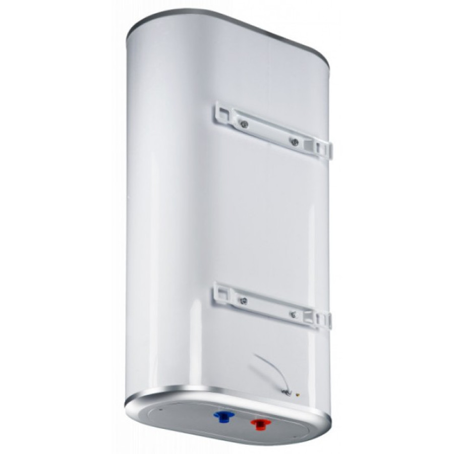 Объем 50 л | Два скрытых “сухих” ТЭНа по 1 кВт | Настенный электро бойлер накопительного типа | Плоский (уменьшенная глубина – 26 см), прямоугольный | Изоляция 20 мм | Гарантия: на бак – 5 лет, на электронику – 1 год