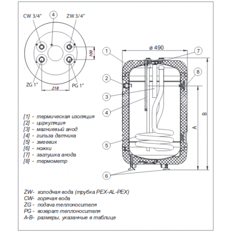 Додаткову активну антикорозійний захист забезпечує вбудований магнієвий анод (модель AMW.300) М8 5/4 "довжиною 300 мм.