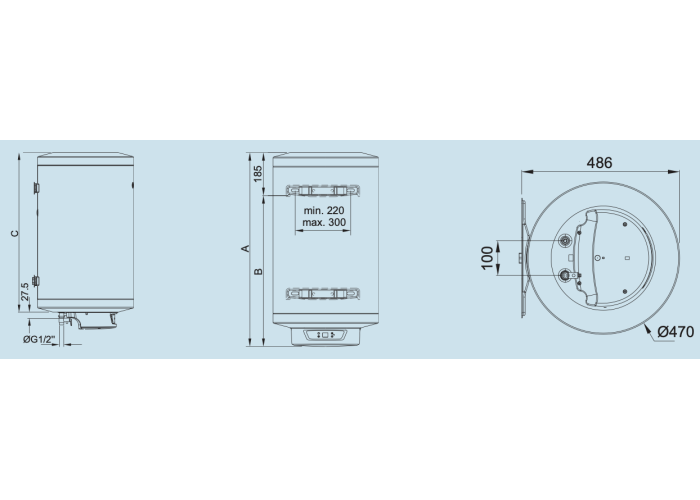 - Настінний, циліндричний, вертикальний бак. Є можливість встановити горизонтально.