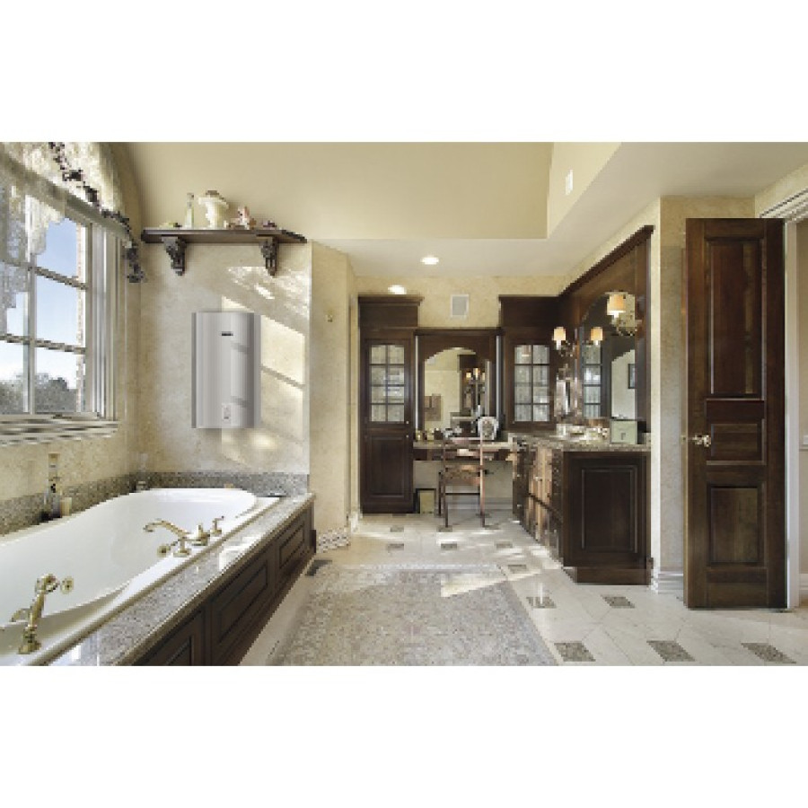 Електричний бойлер Zanussi ZWH / S 50 Splendor - напірний водонагрівач накопичувального типу об'ємом 50 л. Призначений для нагріву води для кухні або душа на 1-2 людини. Настінний монтаж у вертикальному або горизонтальному положенні. Тонкий корпус прямокутної форми, глибиною всього 25 см, органічно вписується в інтер'єр приміщення.