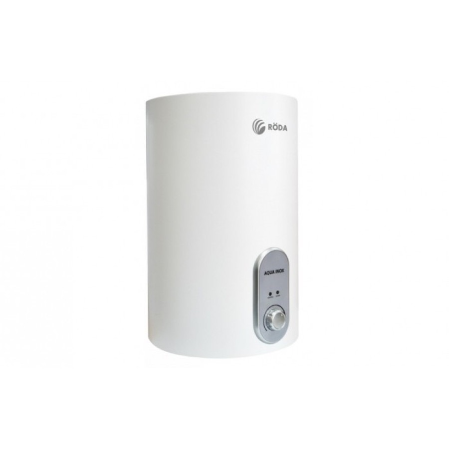Roda Aqua INOX 15 VM - компактний водонагрівач на 15 л з баком з медичної нержавещей стали. Циліндричної форми. Призначений для швидкого нагріву води для кухні. Настінний монтаж у вертикальному положенні. Об'єм гарячої води розрахований для кухонних потреб.